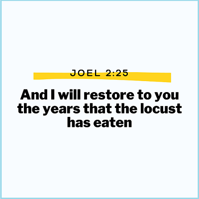 The Lord has been putting RESTORATION on my heart lately. I was out on a walk recently and a huge locust flew up in front of me. Seeing that reminded me of the passage about the Lord restoring the years the locust have eaten. It is a new season and the things that were lost or stolen in the past season are being restored.